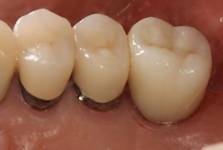透明感のあるきれいなジルコニア。メタルコアが入っている場合は不向き。生活歯またはファイバーコアの場合に適応。金属アレルギーの心配はありません 審美性はオールセラミック>きれいなジルコニア>ジルコニアの順。強度は逆になります。前歯小臼歯に向いています。 セラミックやジルコニアは表面が極めて滑沢でかつ吸水性がないためプラークが付着しにくいので虫歯や歯周病になりにくい特長もあります。 |